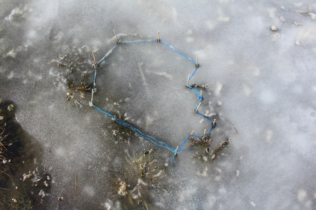 Having obtained pedestrian right of way for a year, we frequented a plot of land, lot 5b du rang 12 in Kingsey Falls, QC. Spanning the seasons and creating in situ, we investigated the property, reflecting on its multiple histories and fragmentations, from the Southwest Nicolet River which borders it to the north, through its wetland, its former pasture and cultivated land, and its woodland – at 3 km/h, our walking speed. Our drawing, performative and sculptural work was founded on the elemental bond between foot and earth. We would like to acknowledge that the land on which we walked and worked is part of the ancestral lands of the W8banaki Nation, the Ndakina.