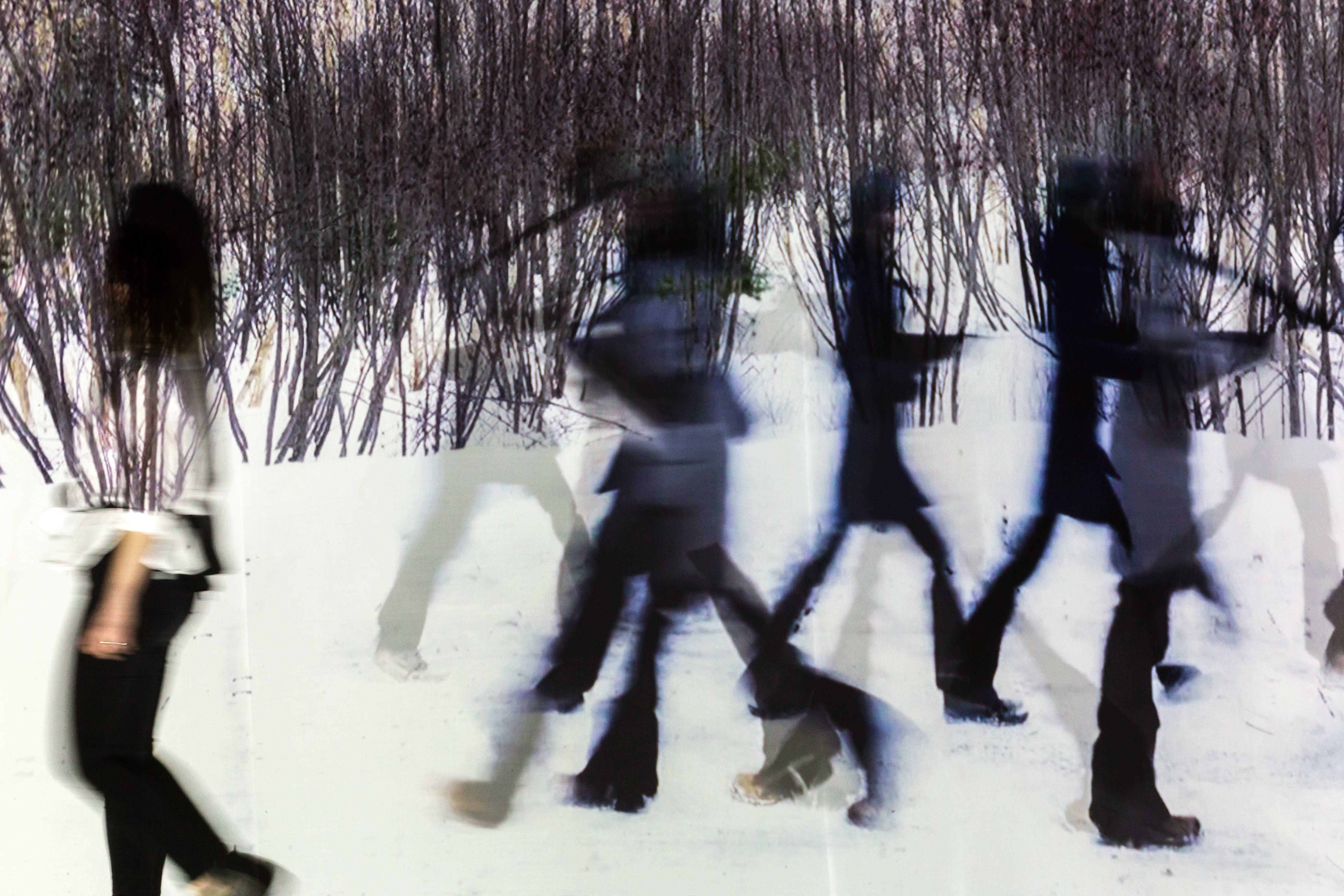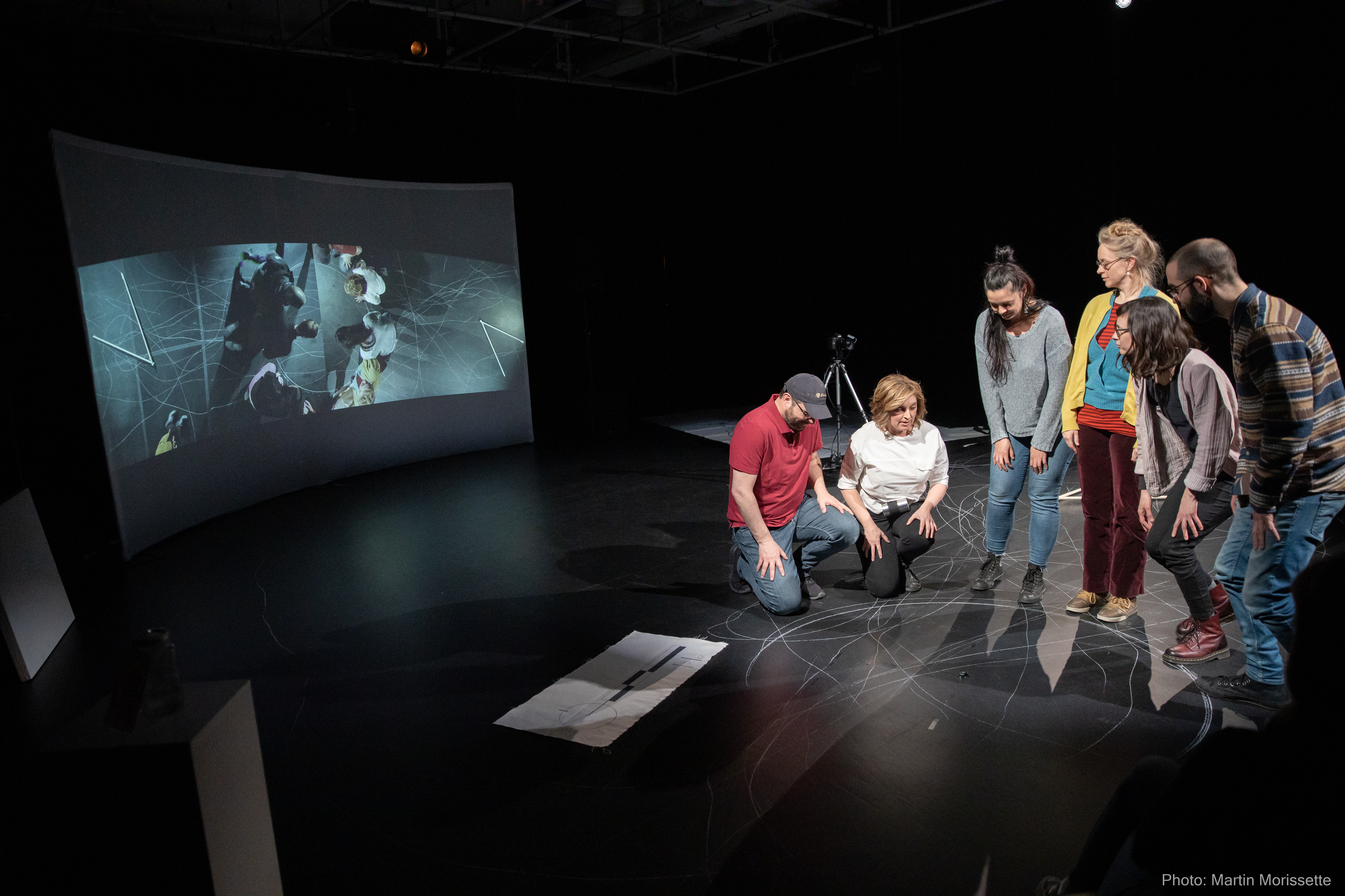 Corpstempslieux (“bodiestimeplaces”) is an experimental performative work in telepresence exploring the language of drawing in its most fundamental form, the line. During a 2-week residency, Bonneau and Knight separated by the 75 km between venues in Victoriaville and Trois-Rivières, we sought to create shared space, inscribing our presence in order to forge connexion, inventing new markers of shared territory. CorpstempslieuX is part of the Société des Arts Technologique de Montréal (SAT) “banc d’essai” program aimed at stimulating the realization of telepresence projects, an emerging creative medium. In collaboration with artists Isabelle Clermont and Dany Janvier, our multimedia work was simultaneously performed live at the Centre culturel Pauline-Julien in Trois-Rivières and at the Centre d’art Jacques-et-Michel-Auger in Victoriaville. It won the 2019 Visual Arts Prize awarded by Culture Centre-du-Québec.